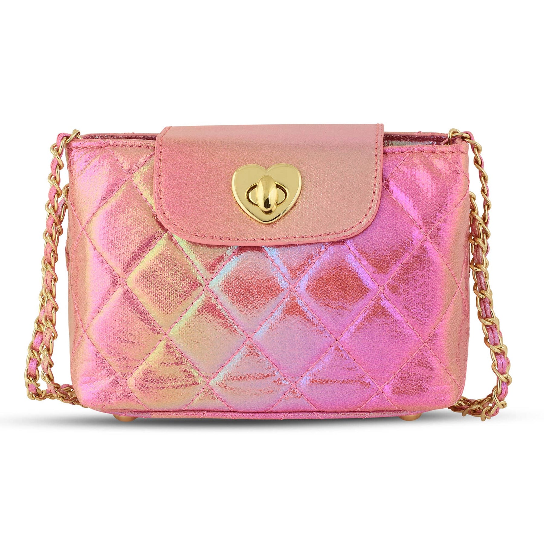 Sparkle, shine, and carry all her favorite things! The Paige Quilted Purse is made for kids who love a little metallic and a lot of fun. With its shimmery quilted fabric, this bag is as magical as her imagination. The comfy woven chain handle adds a stylish touch, while the matching interior lining and zippered pocket keep treasures safe. Whether it’s for a playdate, party, or just everyday adventures, the Paige is the perfect way to carry everything in style!