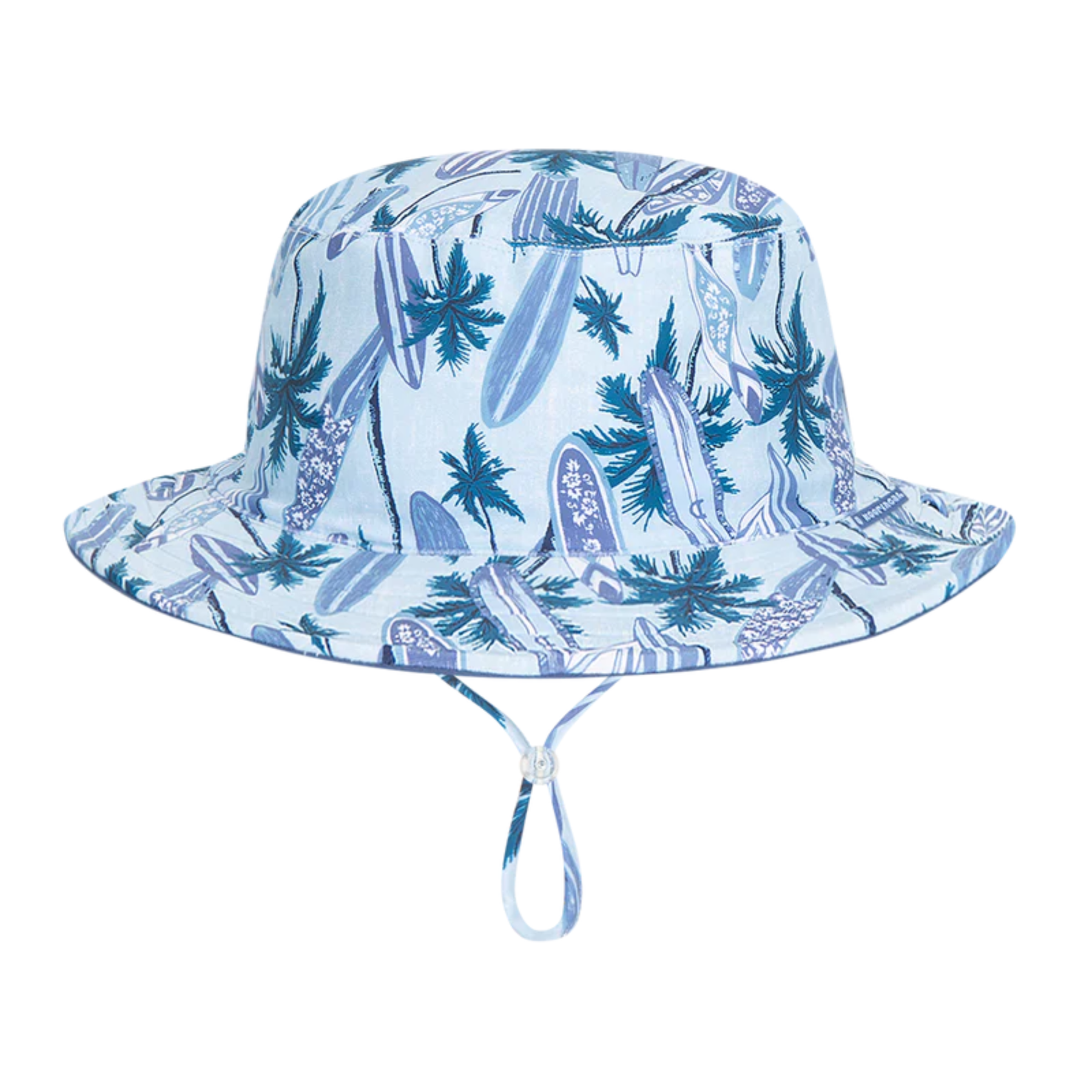 Stay surf-ready in the Wave Break, a high-performance swim hat built for little ones who don't slow down. This reversible wide-brim features an exclusive tropical surf print that flips to a solid blue, giving you two looks in one for a big day at the beach. Made from a stretchy, quick-dry blend with a floatable brim, it’s designed to stay lightweight and easy to find even if it takes a tumble in the whitewash. The detachable chin strap keeps it secure during every shore-break session. High-energy, versatile, and made to rip.