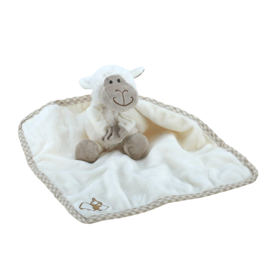 Softer than a soft thing, a double layer of plush comfort square with toy Bunny attached. Square blanket is 29cm x 29cm.