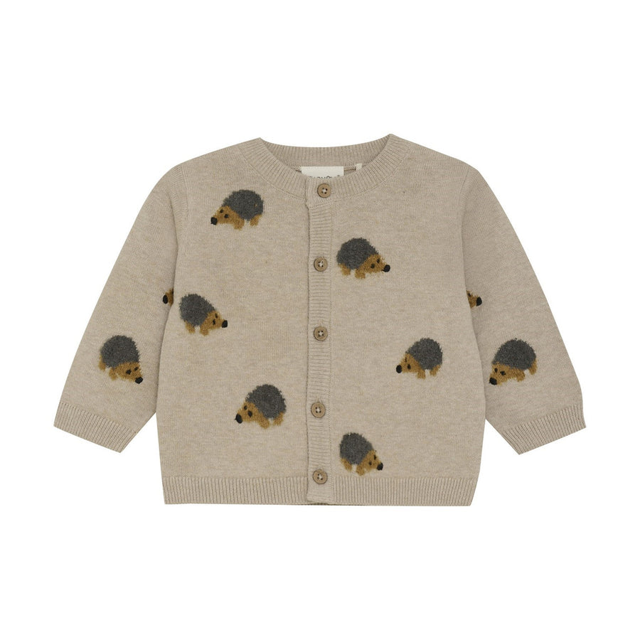 Knitted cardigan with adorable little hedgehog motifs and front buttons. A charming and unique design that blends functionality with cute style.
