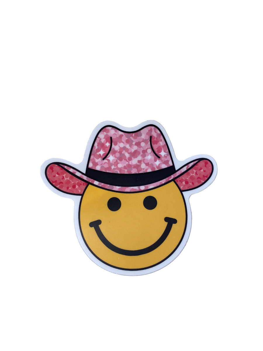 Sparkly Pink Hat Smiley Face - Vinyl Sticker