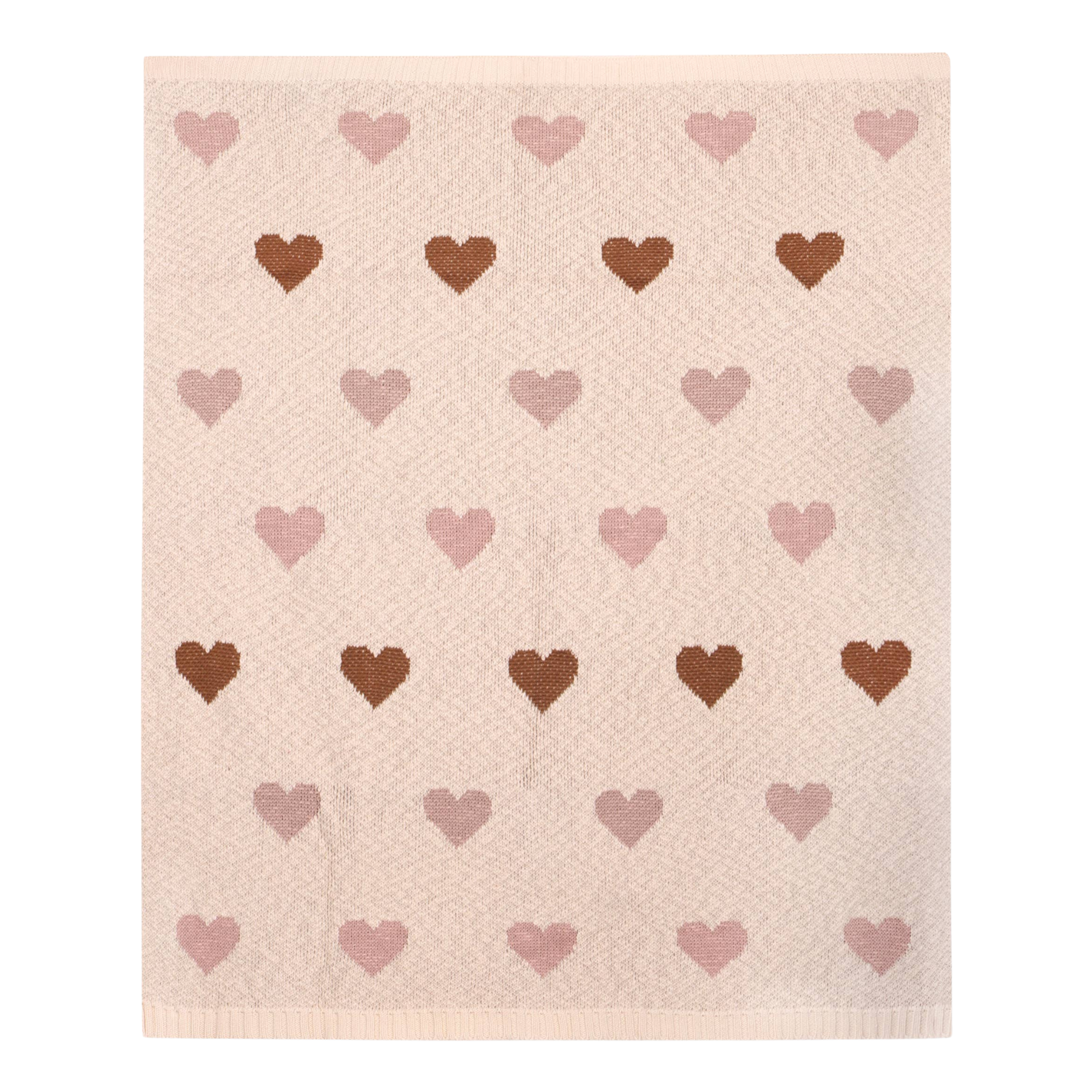 Luxurious 100% Organic Cotton Jacquard Knitted Baby Blanket in thicker knit featuring multicolor hearts. - Size - 30x42”.
