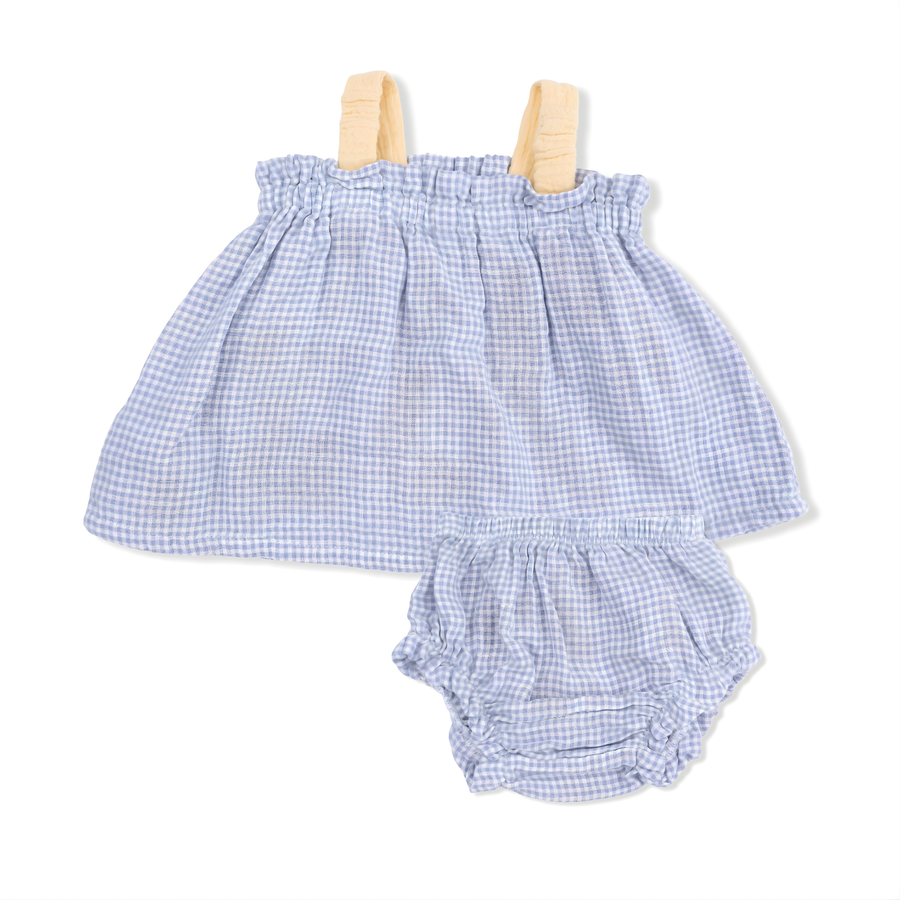 Micro Gingham Blue Blizzard - Top With Bows And Ruffle Leg Bloomer