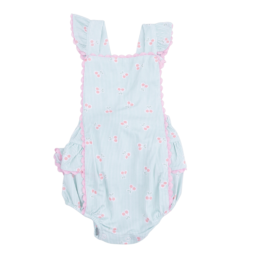 Tiny Cherry Stripe - Ruffle Sunsuit