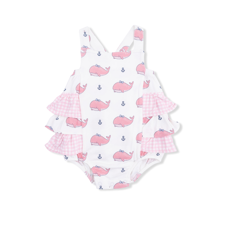 Bubbly Whale With Bow Pink - Ruffle Sunsuit