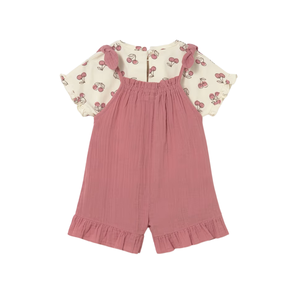 Dungaree and Print T-Shirt Set - Blush