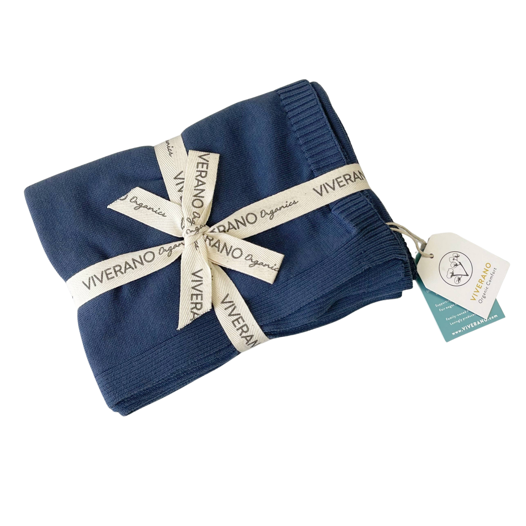 Classic, cozy and soft baby blanket in pure organic cotton fine sweater knit. - 100% organic cotton knitted blanket, natural, pure & luxurious.