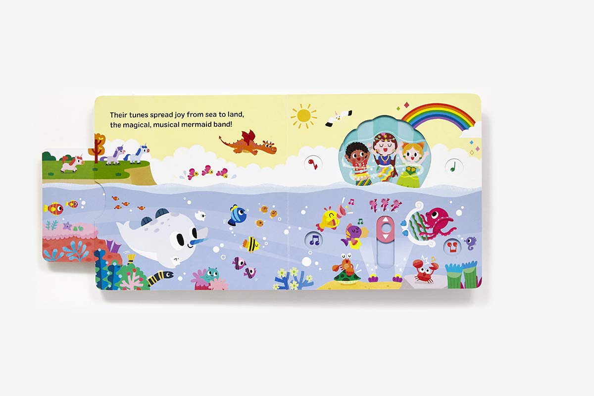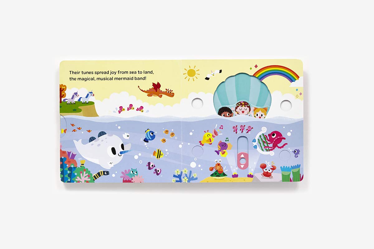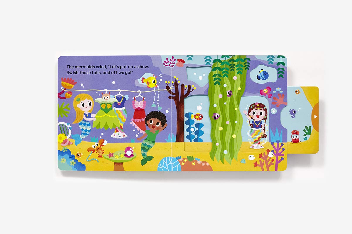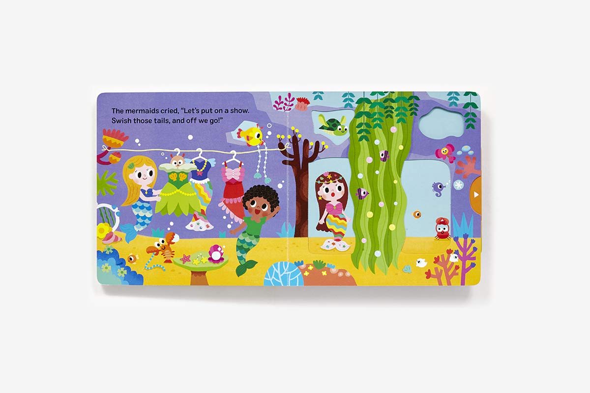 In this interactive mermaid novelty book, readers spin a wheel to animate the character on the front cover. Sparkly holographic foil creates a truly impressive effect as the mermaid's tail seems to flow with magical energy! More interactive mechanisms are featured inside the book. Push, pull, spin, and slide your way through the mermaid’s enchanted underwater world as she plays with her friends. With gentle rhymes, bright colors, and a bit of sparkle and shine, this magical mermaid is sure to delight!