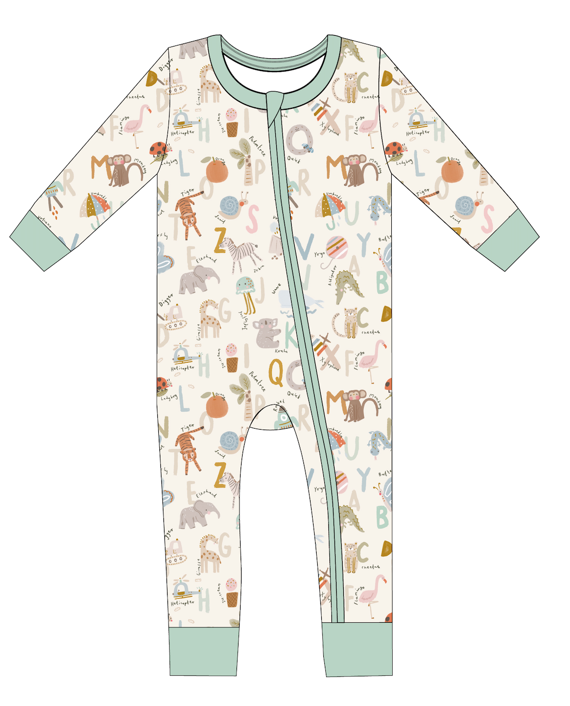Made from the highest quality, extra soft bamboo fabric, our baby pajamas + kid's pajamas are a hit! Our bamboo pajamas are made with our buttery soft bamboo/spandex blend with the perfect amount of stretch + softness. Plus, we make our fabric slightly heavier weight to make our pieces last. Our fabric will hold its shape, color, + quality wash after wash. Please read our many reviews from happy customers! GREAT FEATURES: two-way zipper design for easy changes softest + stretchiest fabric fold over cuffs on hands + feet adorable designs great for littles with sensitive skin breathable + temperature regulating made with sustainable bamboo