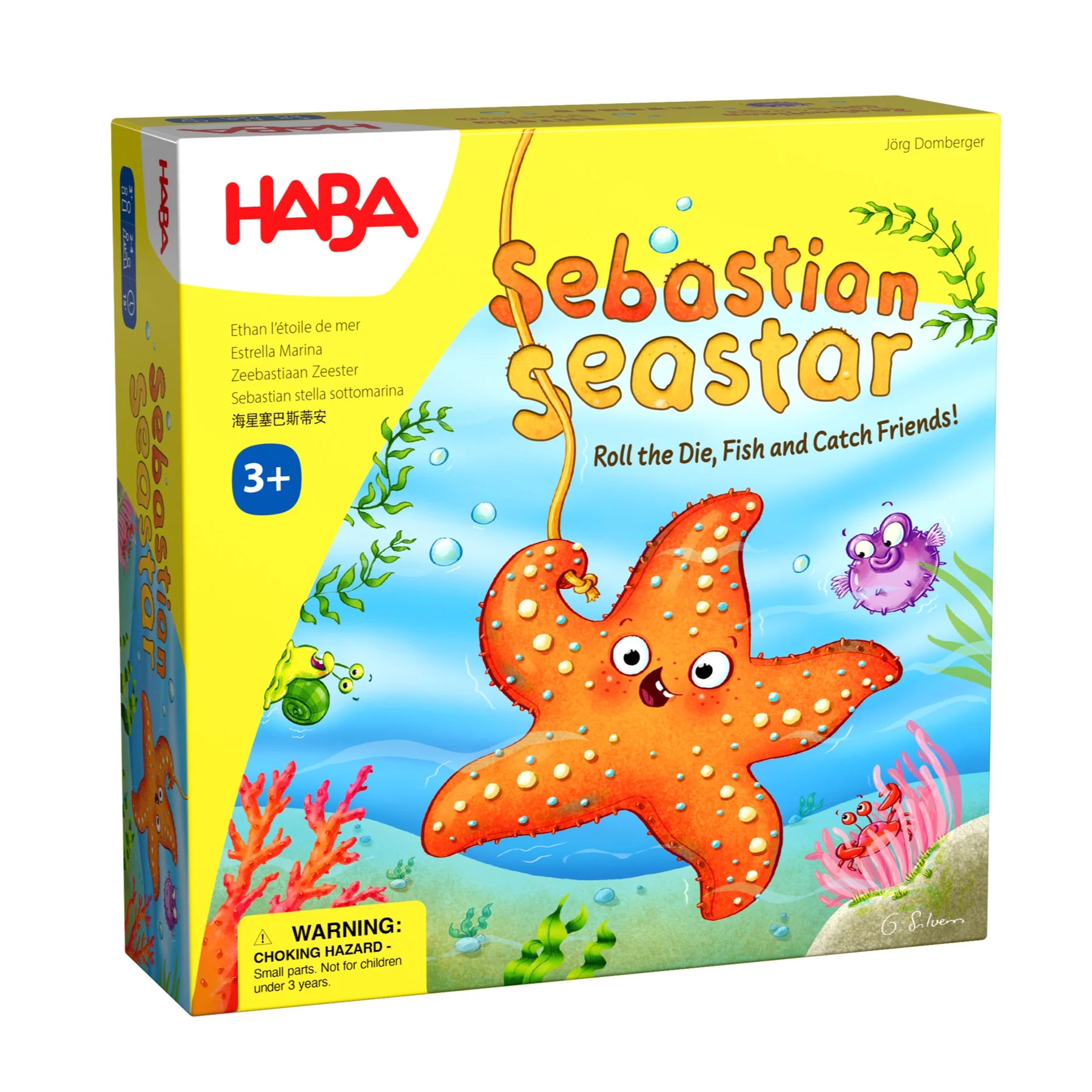 Cast your line, catch your friends, and collect seashells! Sebastian the starfish is a friendly underwater tag champion and with five arms, he’s hard to beat! In this cheerful fishing game, children take turns lowering Sebastian on a fishing line, aiming to tag as many sea creatures of the rolled color as they can. For every friend caught, they earn a shell tile!