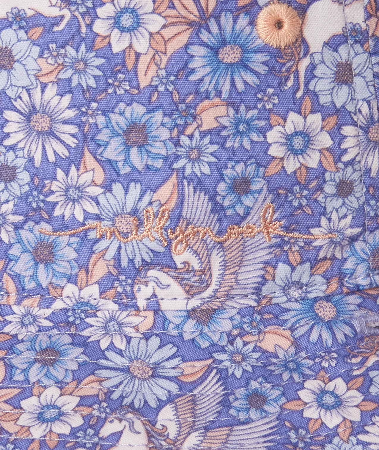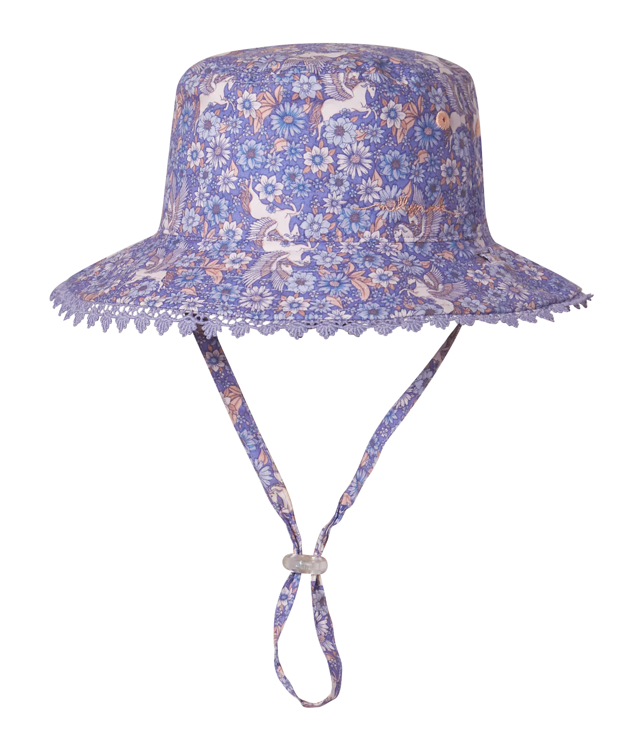 Beautiful paisley pattern girls bucket. Reversible with white\ on the inside. 50+ UPF sun protection, made from quick dry fabric so can be used as a swim hat. Detachable chin strap.