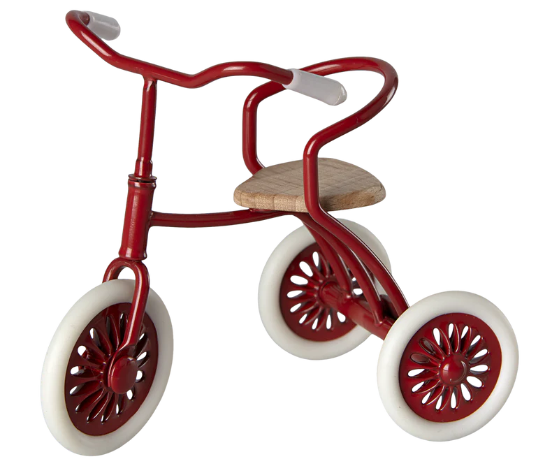 Our tricycles are made of metal and have wooden seats that are beautifully shaped. The bikes arrive in decorative boxes that can be used as bike sheds. Our mice friends with magnetic hands can hold onto the handlebars perfectly.