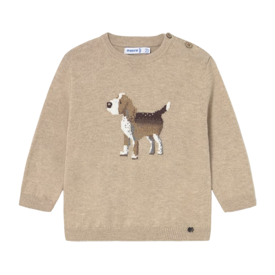 Contains recycled polyamide. Long sleeved Sweater for baby. Round neckline. Back button closure at the collar for easy adjustment. Knitted fabric, soft and pleasant to the touch.