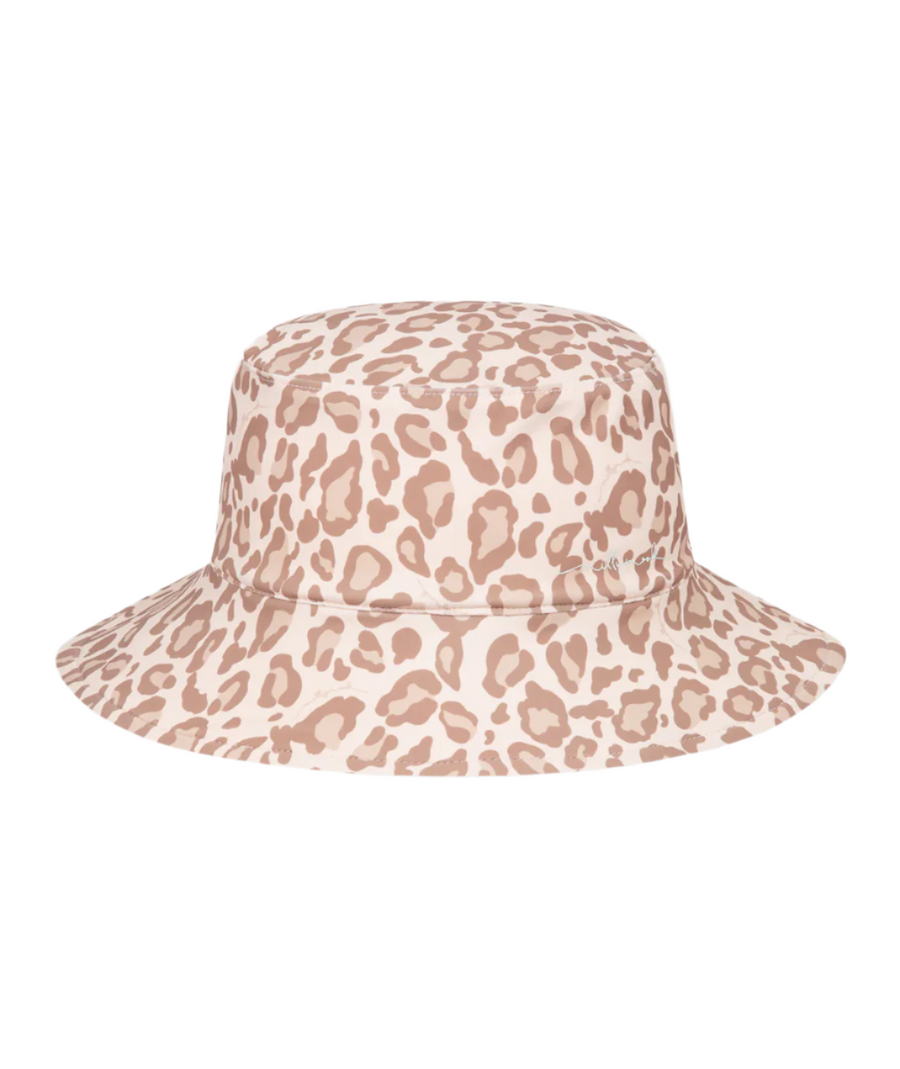 The girls Claire ponytail bucket Is your classic bucket hat style, it features a subtle leopard print design on one side and a pink fabric on the other. This hat will make any summers day fun and playful.