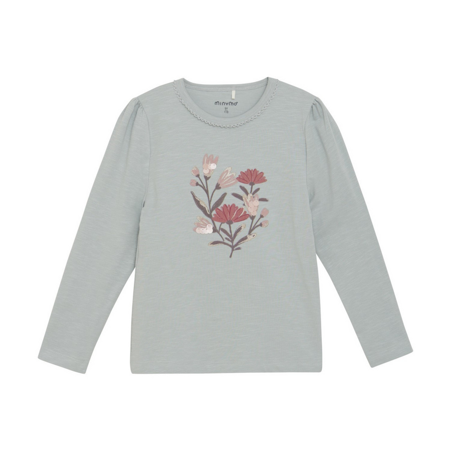 Long-sleeve T-shirt with a delicate front print and elegant puff sleeves, adding a feminine and charming look.