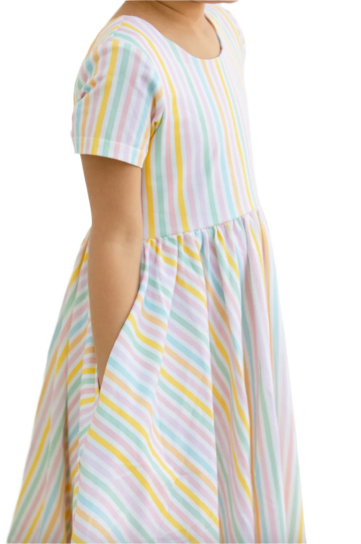 Our signature ballet inspired twirl dress. Featuring extra soft and stretchy fabric with side seam pockets, a double lined bodice, and a full circle skirt for the big twirls we’re known for! 95% Cotton 5% Spandex Wash cold with like colors Hang or lay flat to dry for longer wear