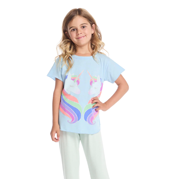 With two vibrant rainbow manes that dance in the breeze, this tee encourages her to embrace her curiosity and let her magic shine.